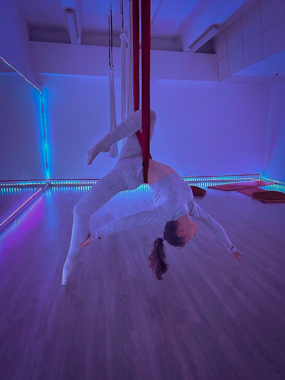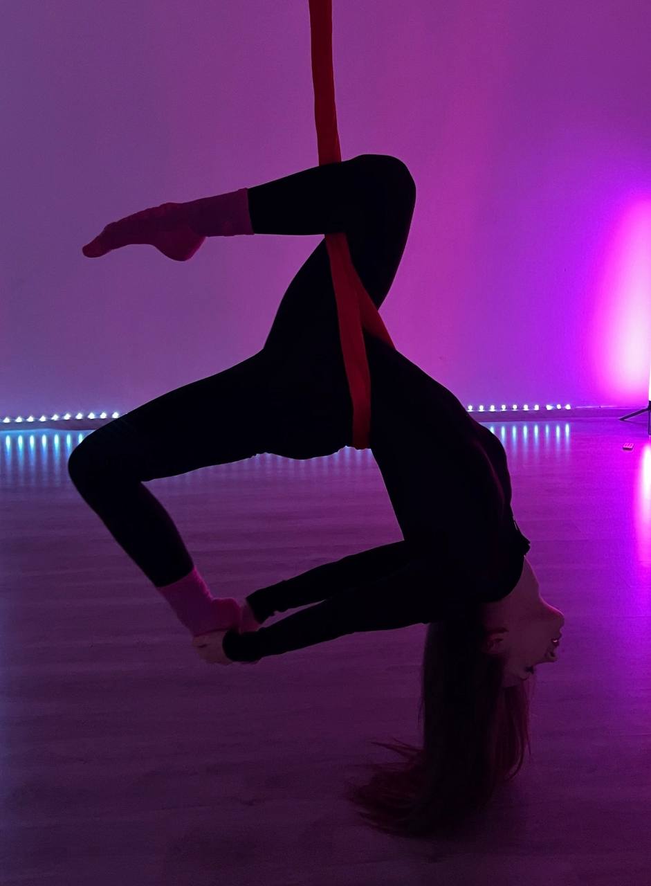 Занятия аэростретчингом – прекрасная возможность развивать ловкость, силу, умение и держать баланс, улучшить растяжку и здоровье спины, а также это прекрасная возможность научиться чему-то новому и освоить красивые элементы и связки в воздухе.